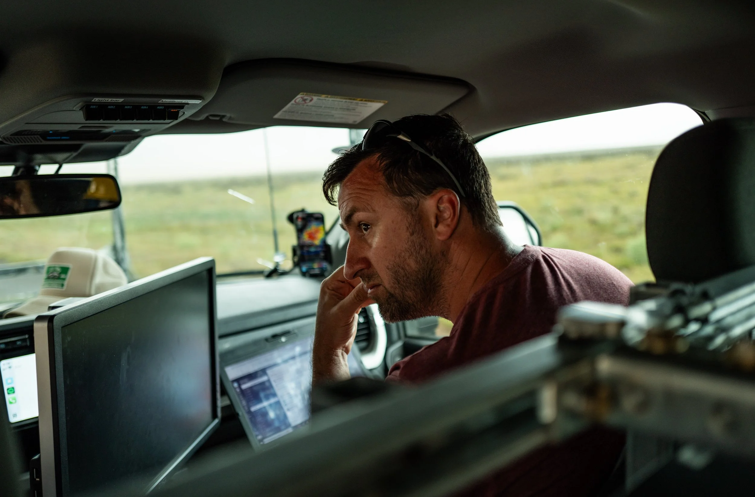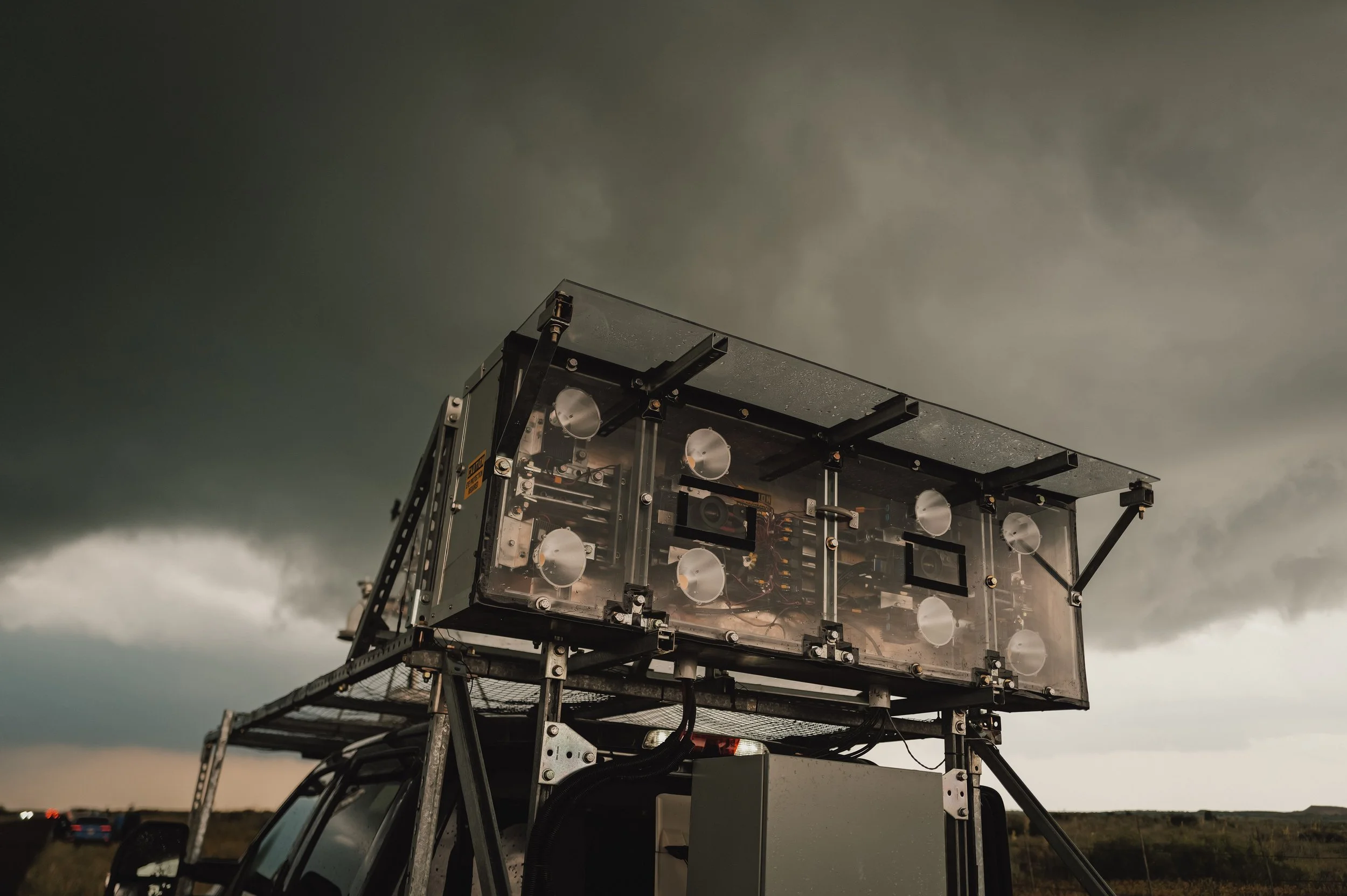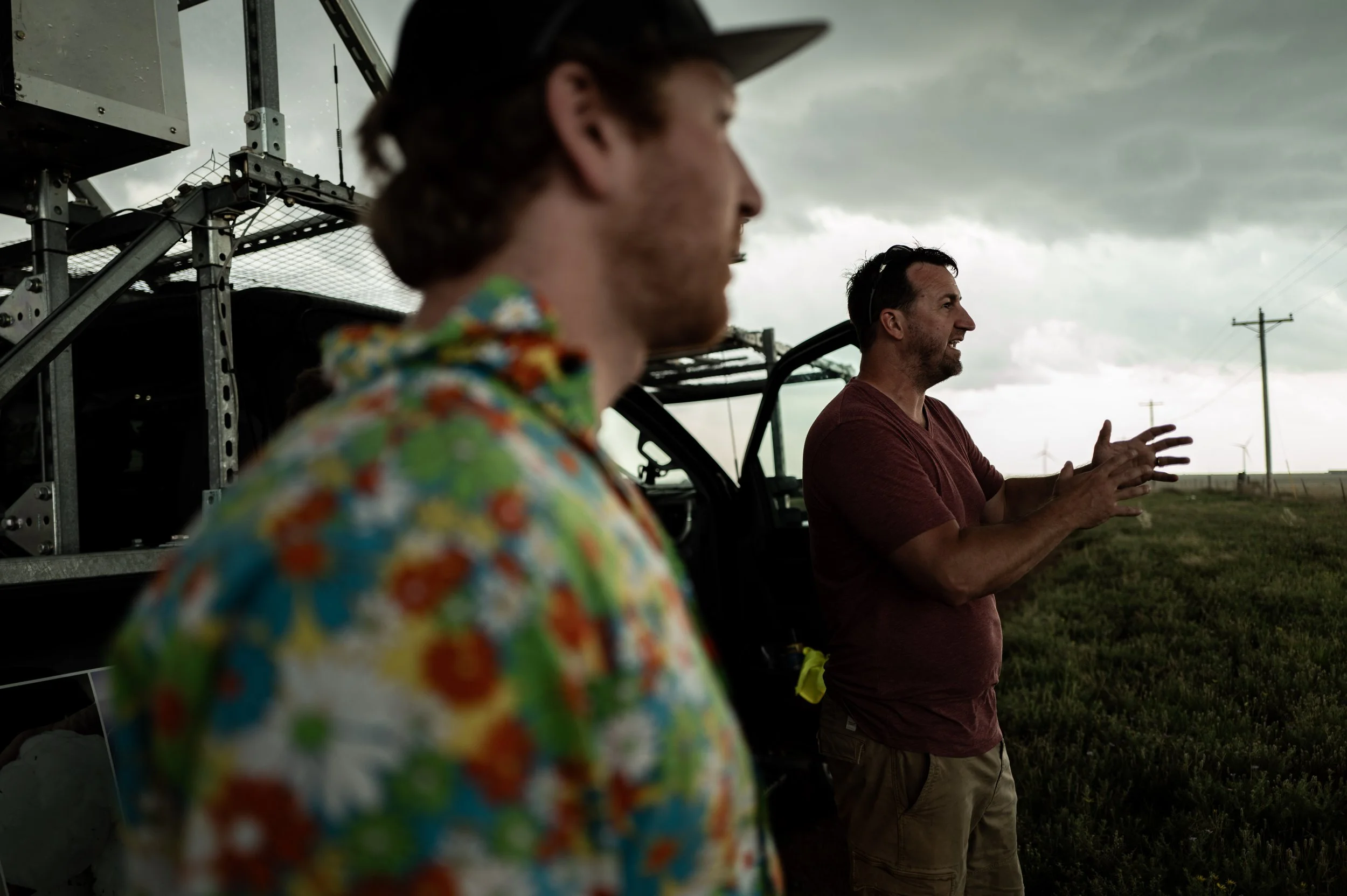 Alongside lead meteorologist Sean Waugh Ian deployed with Hail Cam—a rig at the forefront of severe weather research, bespoke designed photographic and lighting assembly uniquely designed and engineered by Sean—to one of the lead research vehicles. The revolutionary Hail Cam is built to illuminate, track and photograph hail at high speed, even in the depths of the storm. Hail causes billions of dollars of damage to buildings and vehicles each year, making it one of the most costly forms of severe weather for homeowners and insurers. Hail Cam aims to deepen the understanding into hailstorm behavior and impact by providing real-time visual data and analysis to improve forecasting and mitigation strategies.